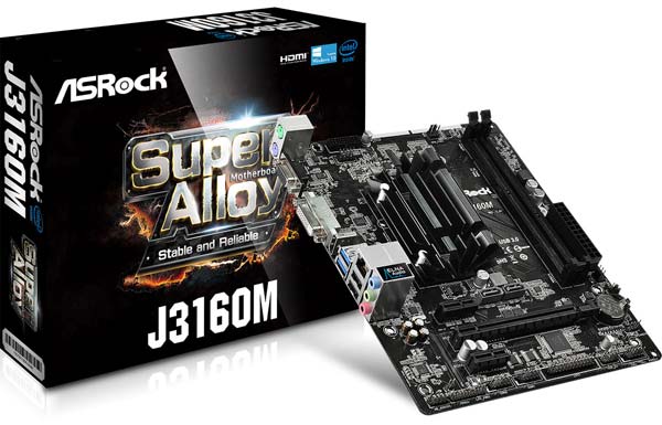 - J3160M (Micro ATX, Celeron J3160, 4 ядра до 2.24 ГГц, DIMM, DVI, HDMI, DP)