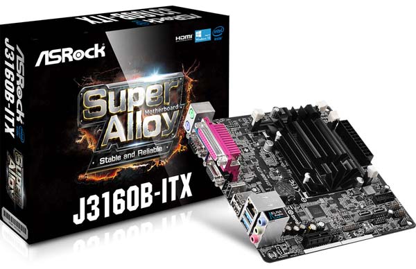- J3160B-ITX (Mini ITX, Celeron J3160, 4 ядра до 2.24 ГГц, SO-DIMM, Параллельный/COM порты, HDMI)