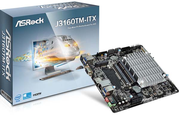 - J3160TM-ITX (тонкая mini ITX, Celeron J3160, 4 ядра до 2.24 ГГц, SO-DIMM, HDMI, питание на плате)
