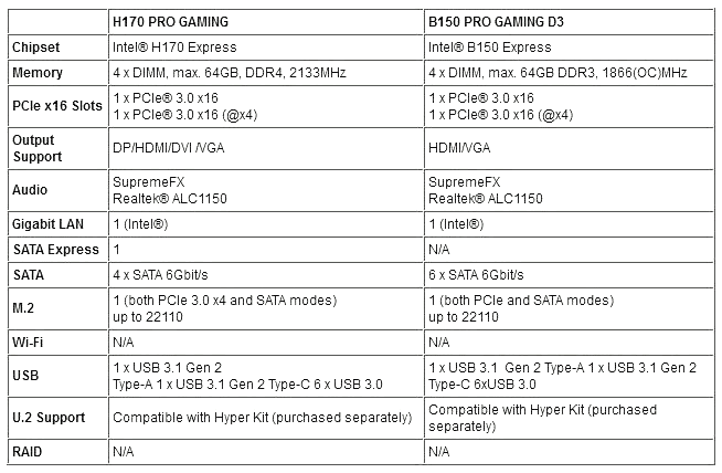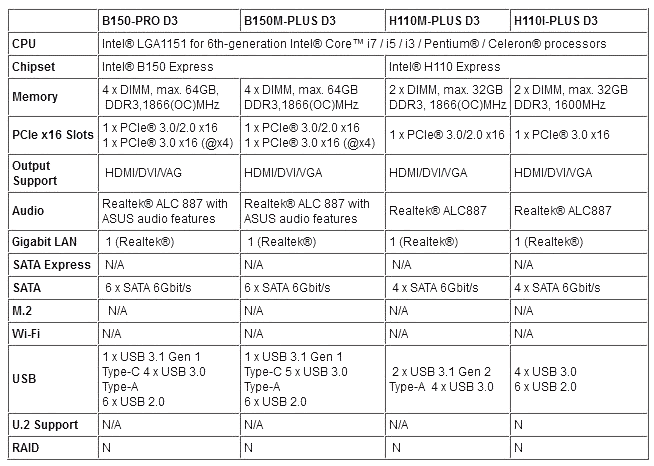 Спецификации новинок можно оценить в табличках ниже, плат представлено огромное количество, так что есть из чего выбрать: