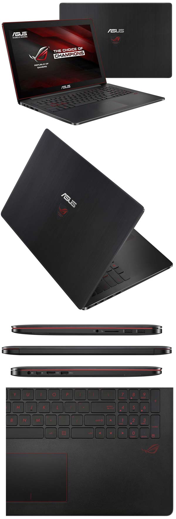 Устройство относится к семейству Republic Of Gamers, именуется G501. Этот 15.6" агрегат получил 4K дисплей, хотя будет доступен и FHD вариант аппарата, что логичнее, т.к. видеокарта GTX 960M не является подходящей для UHD. Основой изделия стала плата на чипсете HM87 Express, процессор - Core i7-4720HQ, оперативной памяти может быть до 16ГБ, места на винчестере до 1ТБ, также есть вариант с 2.5" SATA SSD на 128/256ГБ и PCIe x4 SSD на 512ГБ (1400МБ/с).