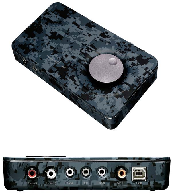 Первый аппарат, о котором пойдёт речь, называется Xonar U7 Echelon Edition. Это внешняя, подключаемая по USB, 7.1 канальная звуковая плата, имеющая отношение сигнал-шум 114дБ, частоту дискретизации 10Гц-46кГц и семплинг рейт 24-бит/192кГц. Новинка оснащена усилителем, способным раскачать 32-150 омные наушники.