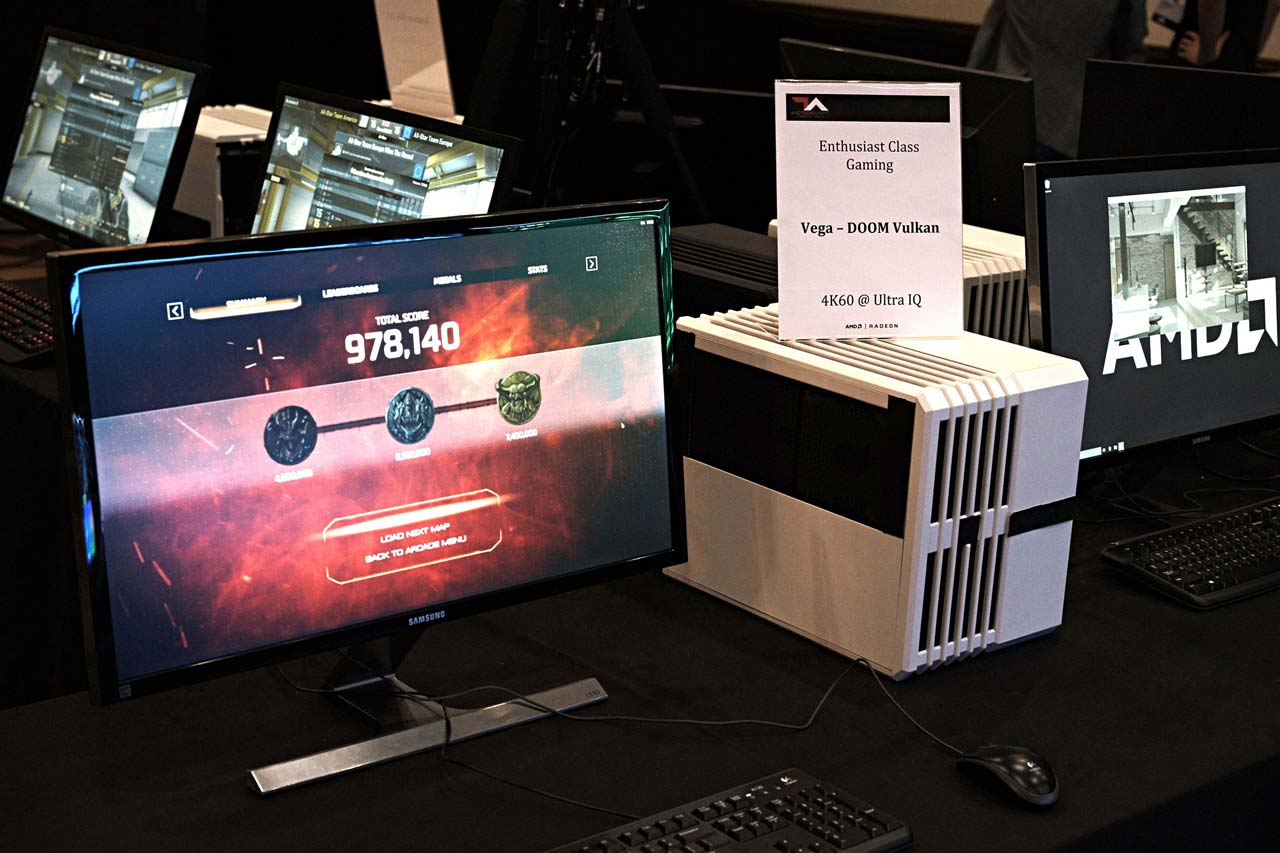 Как видно, видеокарта на базе Vega серии Radeon тщательно скрывалась от прессы (решение укутывали так самоотверженно, что вполне мог быть риск перегрева видеокарты), тем не менее публике показали каков уровень её производительности - 66-68 FPS в DOOM при использовании API Vulkan в разрешении 4K при максимальных настройках графики (пресет Ultra). Это уровень GeForce GTX 1080 или около того, может даже чуть выше. Сколько же AMD попросит за своё чудо-творение?
