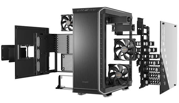 Корпуса Dark Base 900 и 900 Pro поставляются со 140мм вентиляторами SilentWings 3 (два с фронта, один с тыла, все с ШИМ/PWM управлением), есть возможность самостоятельной инсталляции трёх 140мм на верхнюю стенку, двух на нижнюю и двух на боковую (для Pro последняя названная опция недоступна).