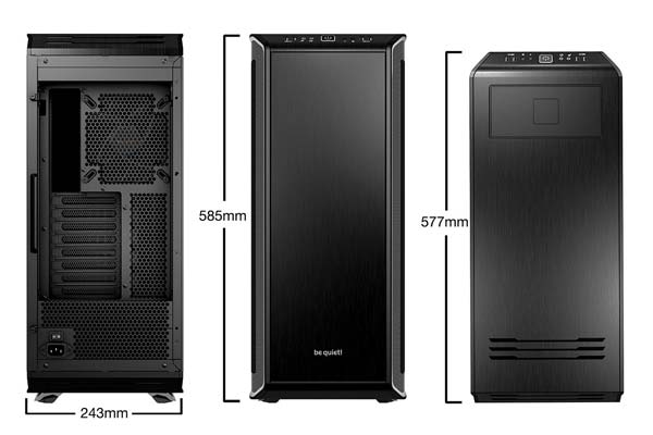 Корпуса Dark Base 900 и 900 Pro имеют больше схожих черт, с них и начнём. Устройства созданы из ABS пластика, стали (и закалённого стекла в случае с Pro версией), совместимы с материнскими платами форм-факторов E-ATX, XL-ATX, ATX, M-ATX и Mini-ITX, имеют размеры 577x243x585мм, весят 14.18~14.39КГ.