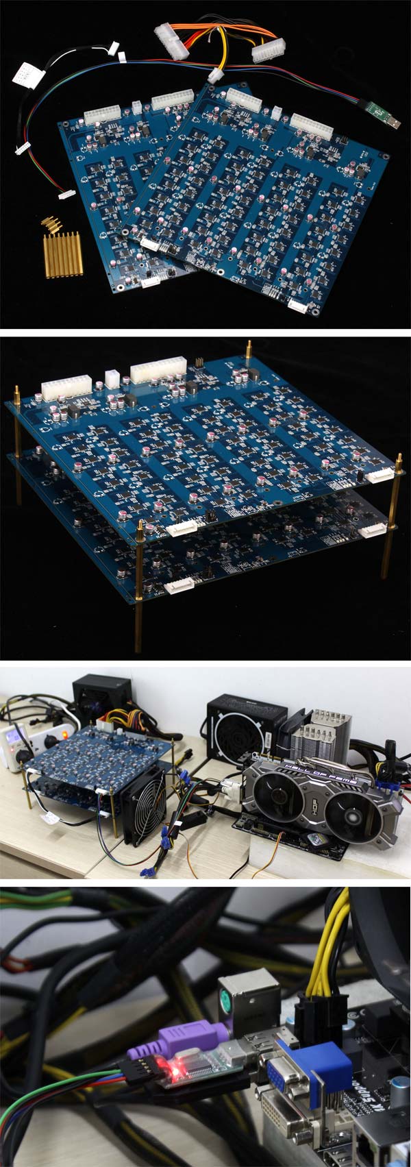 На основе BTC-24GH можно собрать весьма мощный аппарат по замообогащению, только вот непонятно, сколько такое удовольствие будет стоить и когда появится на рынке. Прочие спецификации продукта Biostar также не называются, так что нам остаётся лишь смотреть на фотографии ниже и стараться понять, как и что там устроено и каким образом работает.