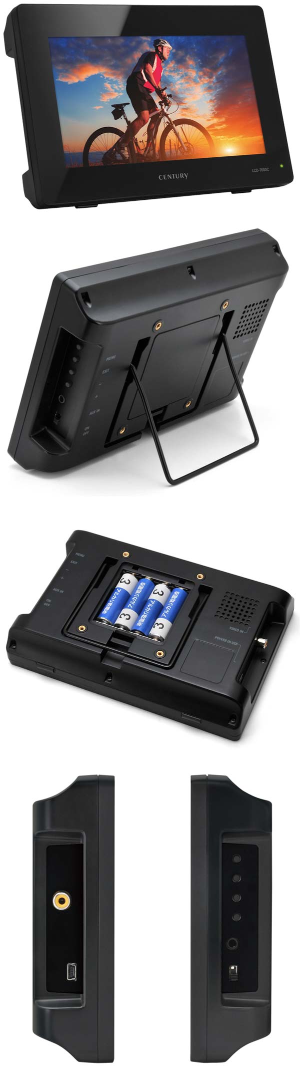 Новинка получила имя LCD-7000C, она представляет собой 7" портативный ЖК телевизор, питается который от батареек АА, использовать которых нужно сразу 4 штуки. Помимо этого источника питания продукт Century может работать от электросети или же от подключения к компьютеру (или пауэрбэнку, например) по Micro USB.