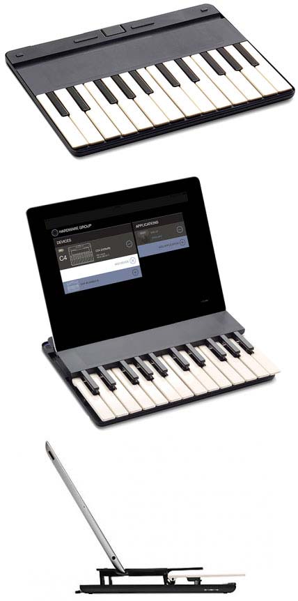 Аппарат исполняет две функции - защитного чехла для iPad и музыкальной клавиатуры для него же. Вторая функция куда интереснее первой, ибо позволяет превратить планшет производства Apple в некое подобие полноценного музыкального устройства, особенно если клавиатур C.24 присоединить пару.