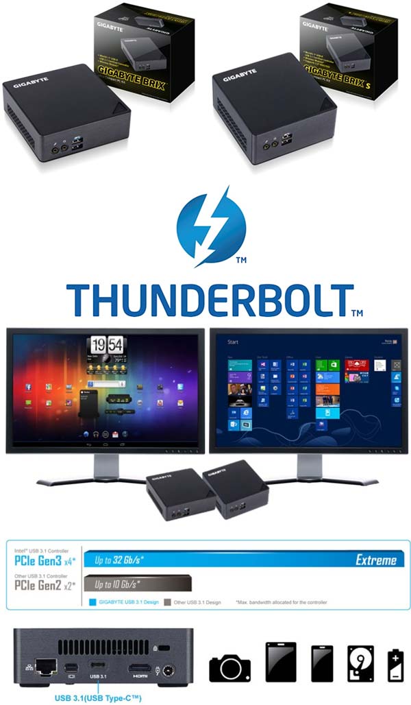 Thunderbolt 3 идёт в массы, правда ещё медленнее, чем в своё время добирался до народа USB 3.0. Компания Gigabyte явила миру сразу четыре баребона семейства Brix, сертифицированных Intel для работы с Thunderbolt 3.