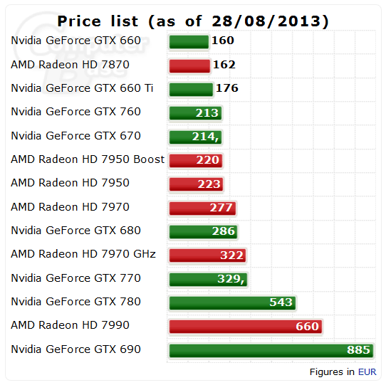 Согласно наблюдениям моих западных коллег, наконец-то стала адекватной стоимость видеокарты GeForce GTX 680. Если раньше она стоила примерно столько же, сколько более быстрая GTX 770, то сейчас её цена находится на уровне 286 евро, когда как за GTX 770 просят 329 евро.