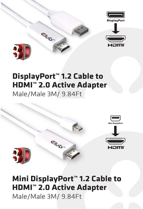 У компании Club3D припасена парочка достойных продуктов для тех, кому нужно подключить нечто с DisplayPort к порту HDMI.