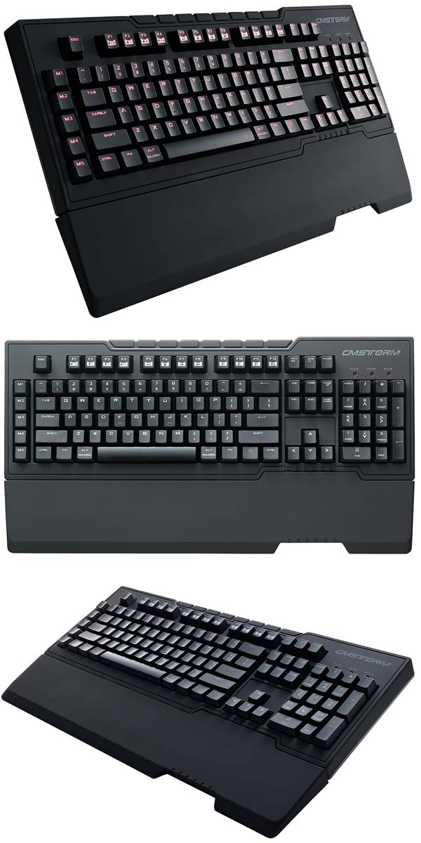 Новый продукт CM Storm поддерживает до 64 одновременно нажатых клавиш, изделие имеет возможность обновления прошивки через Интернет. По доброй традиции, клавишу Windows можно заблокировать, дабы случайно на неё не нажать во время игры и не вылететь в одноимённую ОС. На клавиатуре можно найти аудио коннекторы для присоединения к ним наушников или гарнитуры.