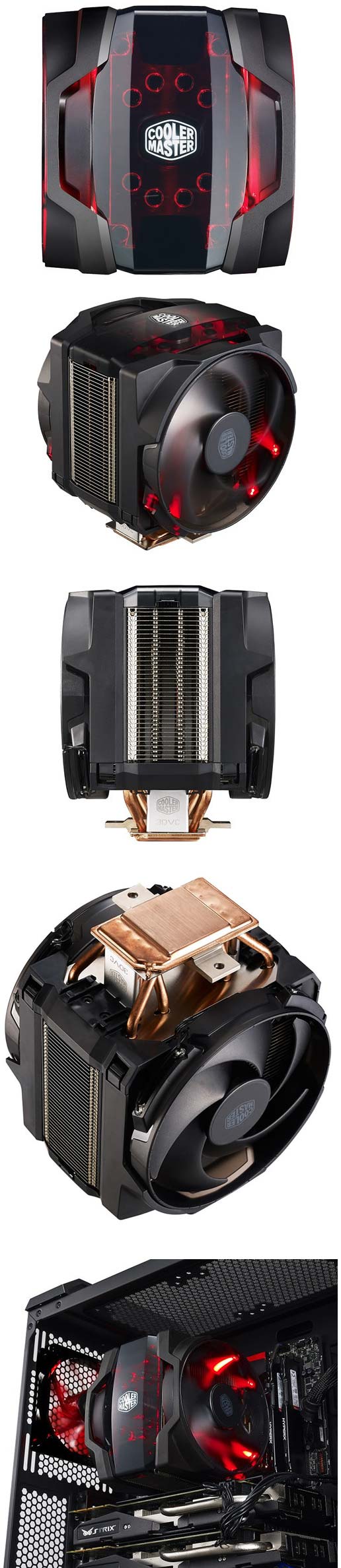 Master Air Maker 8 - таково название новой системы охлаждения для процессоров как Intel (LGA 2011-v3 / 2011 / 1366 / 1156 / 1155 / 1151 / 1150 / 775), так и AMD (FM2+ / FM2 / FM1 / AM3+ / AM3 / AM2+). Размеры изделия впечатляют: 135x145x172мм, вес равен 1350 граммам. В решении используется технология 3D испарительной камеры, также задействовано восемь 6мм теплотрубок и алюминиевые пластины.