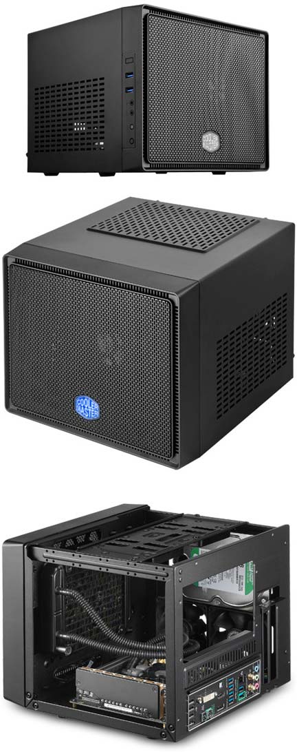 Говорится, что в корпус поместится видеокарта длиной до 210мм, а также блок питания длиной до 180мм. Также, в творение Cooler Master легко влезут три винчестера 3.5" или же четыре SSD/иных 2.5" накопителя. На боковые стенки Elite 110 можно установить два 80мм вентилятора, а на панели ввода/вывода можно обнаружить два USB 3.0 и аудио коннекторы.