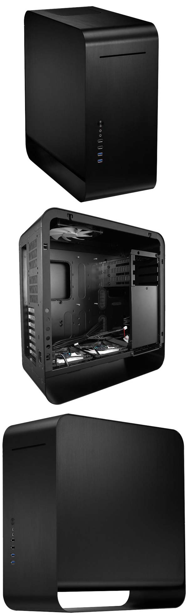Новинка получила имя UMX2, она сделана из стали и алюминия, совместима с материнскими платами форм-факторов ATX, mATX и ITX, имеет один 5.25" тонкий отсек, три места для 3.5" накопителей и два для 2.5". В новинку влезет до пяти вентиляторов, при этом три уже установлены (два в днище и один на верхней стенке).