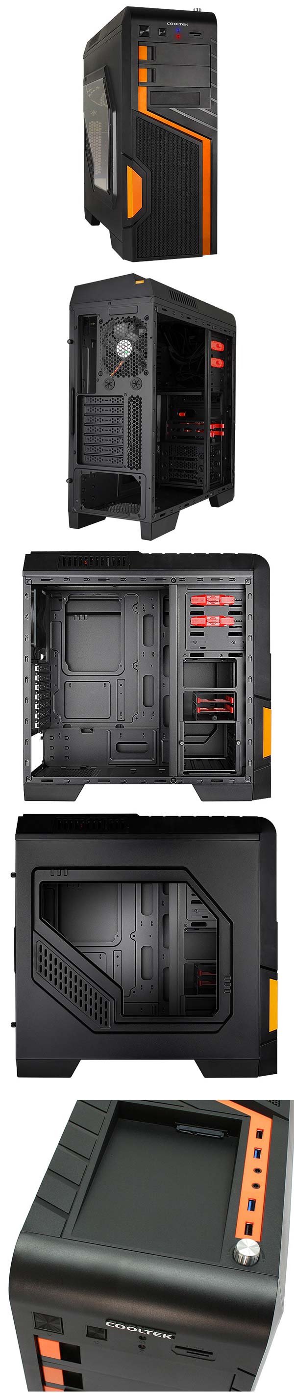 Корпус GT-04 получил прозрачное окошко в боковой стенке, имеющимися вентиляторами можно управлять с помощью имеющегося реобаса. На панели ввода/вывода находятся порты USB 2.0 и 3.0 (по 2 каждого типа), а также HD аудио коннекторы. Пылевой фильтр есть лишь перед вентилятором в отсеке для блока питания.