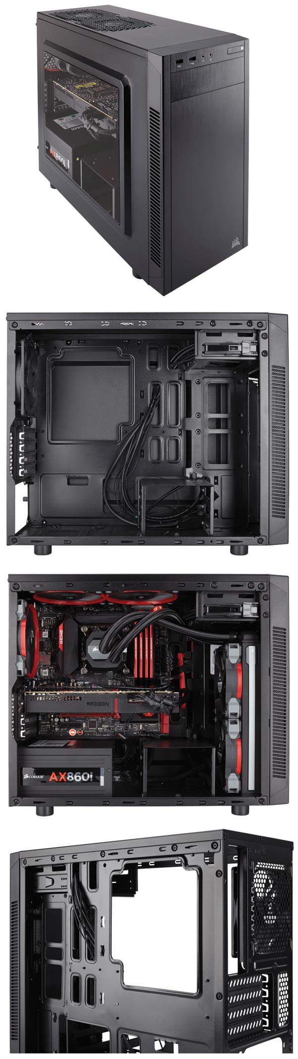 Новинка именуется Carbide Series 88R, на мой взгляд слово в середине явно лишнее. Как бы там ни было, решение рассчитано на системные платы форм-фактора microATX, обладает совместимостью с 240мм радиаторами СВО, поддержкой 2.5" SSD (мест для них два), портами USB 3.0, может похвастаться направленным воздушным потоком от пары 120мм фронтальных вентиляторов прямо на видеокарту. Есть места для 120мм вентиляторов на верхней стенке и на задней.