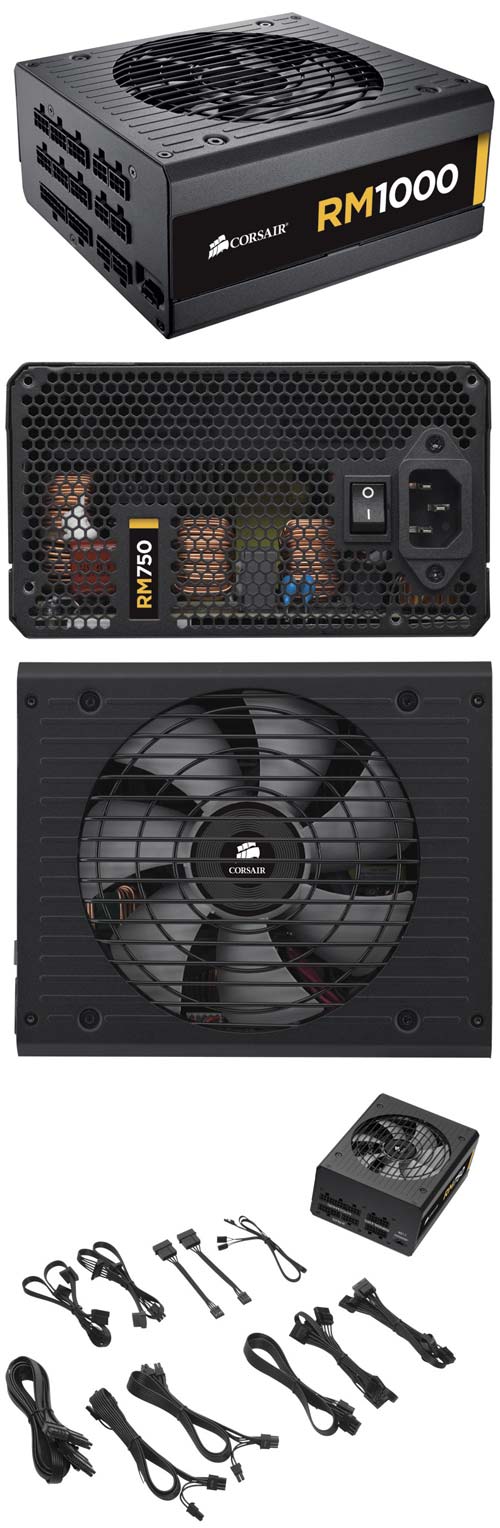 Аппараты оснащены плоскими кабелями, улучшающими воздушный поток внутри шасси ПК, имеется совместимость с Corsair Link, охлаждается внутреннее пространство блоков питания серии RM 135мм вентилятором с функцией полного отключения на средних и более низких нагрузках.