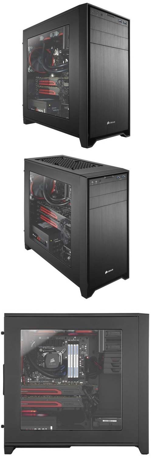 Шасси будет доступно как с прозрачным окном в боковой стенке, так и с без оного. Корзины для накопителей (одна для 3.5", другая для 2.5") внутри корпуса от Corsair расположены таким образом, что не препятствуют установке самых длинных видеокарт.