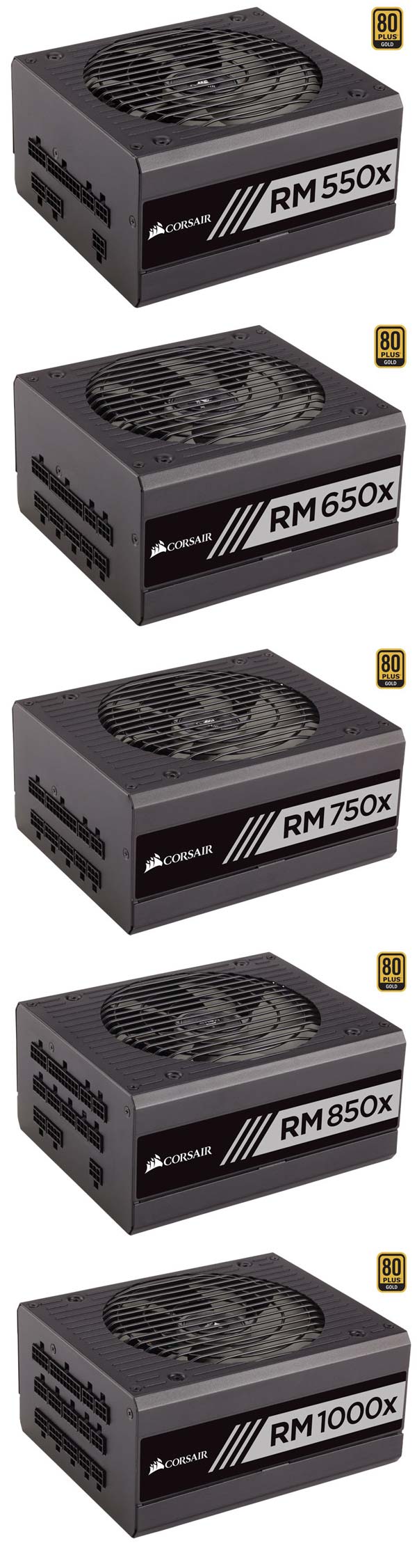 Семейство именуется RMx, в него вошло пять аппаратов мощностью 550, 650, 750, 850 и 1000 ватт. Все они имеют сертификат эффективности 80 Plus Gold, т.е. способны обеспечивать 90% эффективность, выделяя при этом меньше тепла и уменьшая счета за электроэнергию.