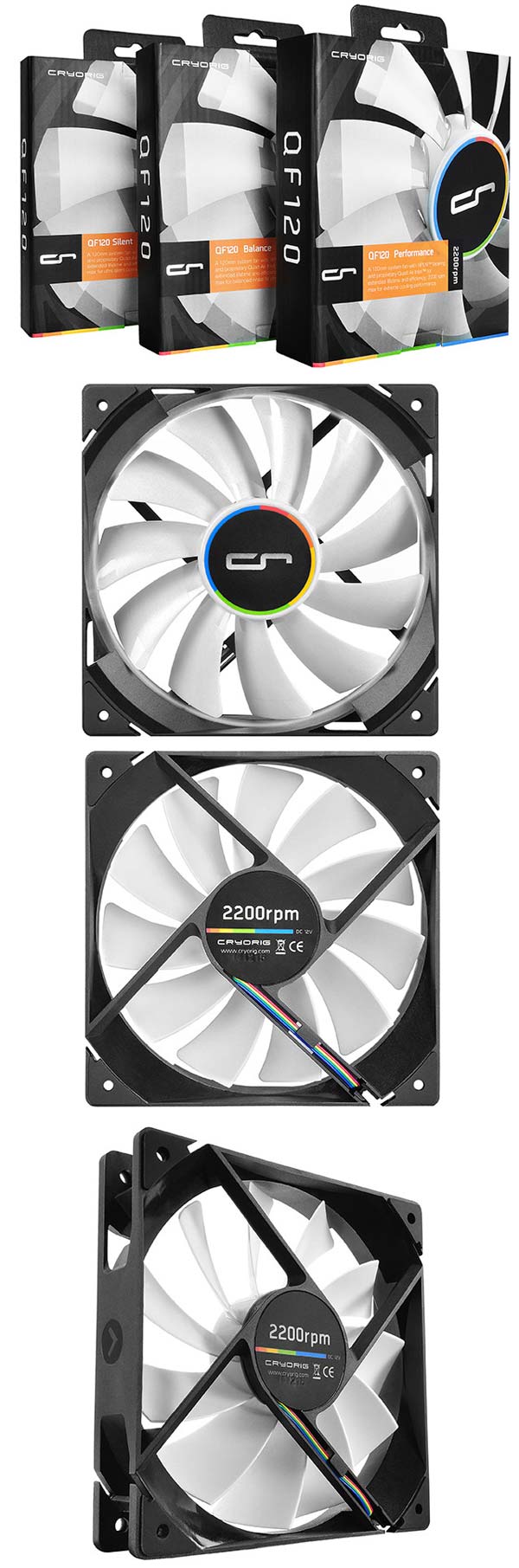 Фотографии вентиляторов QF120 Silent, Balanced и Performance от Cryorig