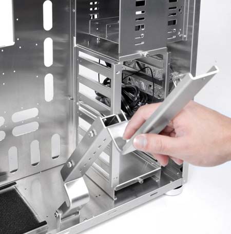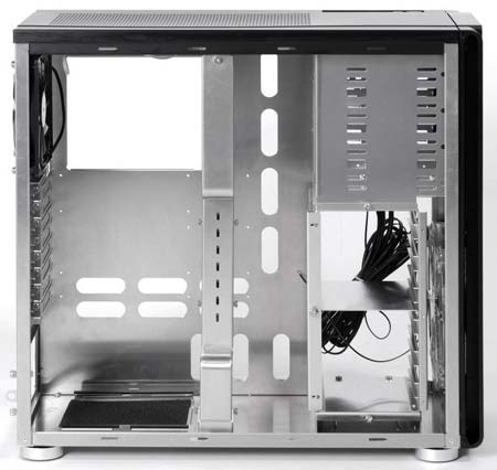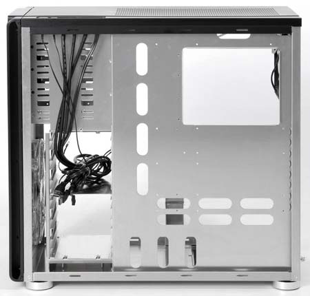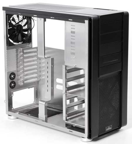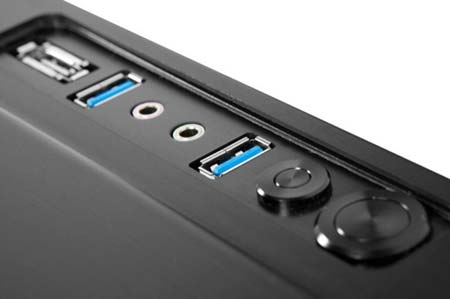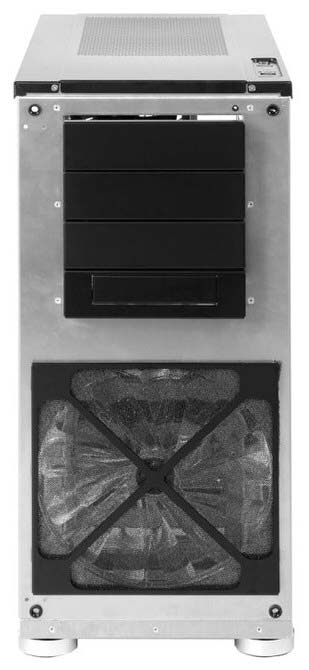 Габариты свеженькой железячки: 230х490х525мм, материал изготовления - сталь, хотя для переборок используется алюминий. У XL Tank четыре отсека для 5.25" устройств, пять мест для 3.5" винчестеров и два - для 2.5" накопителей. Поддерживаемые форм-факторы материнских плат - XL-ATX, ATX, MicroATX и Mini-ITX, такая забота о пользователе впечатляет. На передней панели (находящейся в верхней части корпуса) имеются аудио, USB 3.0 и eSATA порты.
