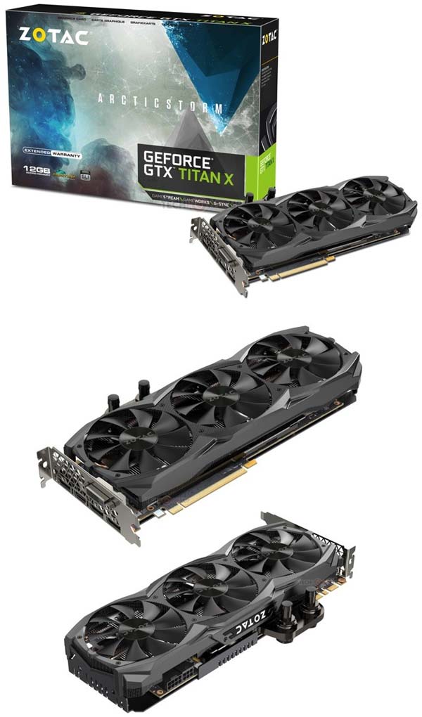 Анонс изделия появился на многих сайтах, но обзоров и тестов я почему-то ещё не вижу. Как бы там ни было, вот что известно о новинке: используется графическое решение GM200, архитектура Maxwell, количество CUDA ядер равно 3072, TMU в наличии 192, ROPов - 96, 12ГБ памяти GDDR5 типа имеют 384-битную шину. TDP решения - 250 ватт, производительность - до 7.1 ТФЛОПС в режиме одинарной точности. Дизайн на данный момент имеется только референсный, карты не отличаются друг от друга ничем кроме упаковок. Питание осуществляется через 6+8-пиновые коннекторы, требования к блоку питания по мощности - 600 ватт.
