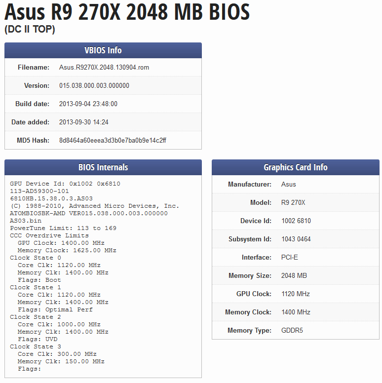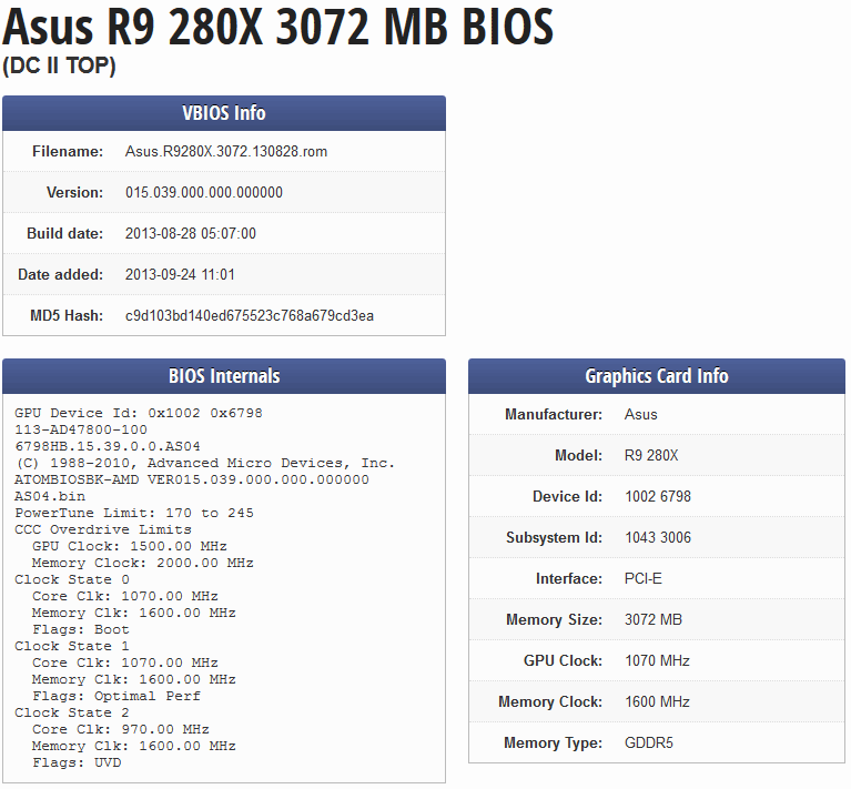 С ресурса TechPowerUp поступили сведения о BIOS трёх новых видеокарт ASUS, а с VideoCardz стала доступна дата релиза Radeon R9 280X, R9 270X и R7 260X.
