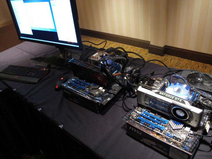 На мероприятии были люди, которые поделились личными впечатлениями от знакомства с Radeon R9 290X. Карточек было две, в составе двух идентичных тестовых стендов, основой которых стали системные платы от MSI и процессоры Core i7-3960X. Побывавший на организованной AMD встрече пользователь Shadow_UGZ с сайта Overclockers.net рассказал следующее: