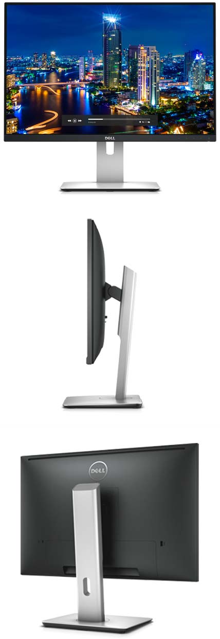 Количество отображаемых цветов - 16.7 миллионов, подсветка - белая светодиодная (WLED). Толщина рамок по краям экрана - 6.9мм, из видеовходов присутствует два HDMI (с MHL), один Mini DisplayPort, а также один видеовыход DisplayPort. В корпус аппарата производства Dell встроен USB 3.0 хаб на пять портов, один из которых имеет функционал быстрой подзарядки мобильных устройств. Монитор не мерцает (Flicker free), что не может не радовать. Кушает новинка от 23 до 75 ватт электроэнергии, имеет размеры 402.9~517.9x532.2x205мм, весит 4.25КГ без подставки.