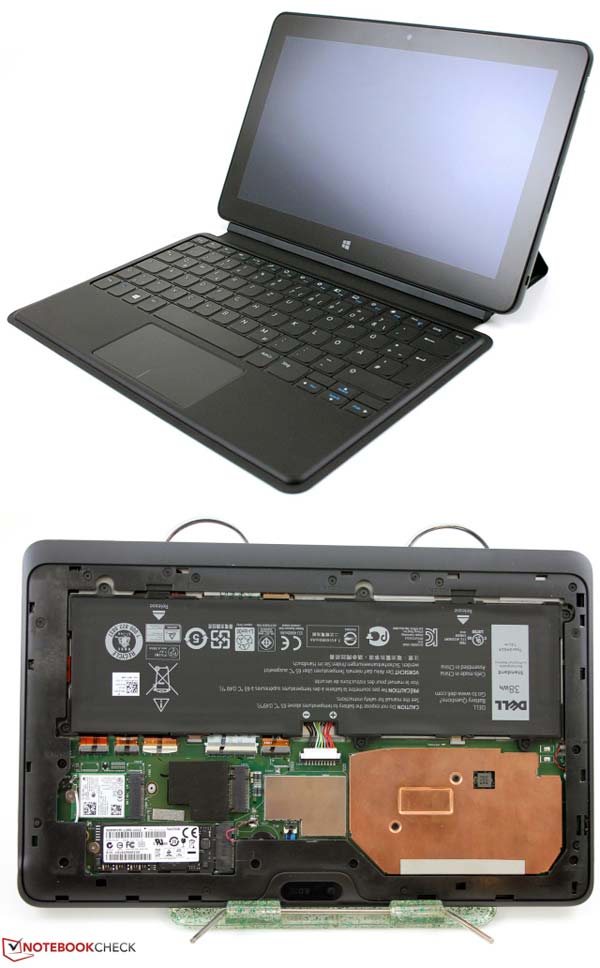 Экран планшета, способного становиться ноутбуком с помощью подключаемой клавиатуры-дока, имеет диагональ 10.8 дюймов, он IPS типа, его разрешение - Full HD, он имеет широкие углы обзора, яркость в 356 кандел на квадратный метр и контрастность 965 к 1. Творение Dell имеет порт USB 3.0, порт Micro USB, видеовыход micro-HDMI, выход/вход для наушников и микрофона, слот для карточек microSD. Также есть сведения о поддержке WiFi, 4G-LTE, Bluetooth 4.0 и NFC.