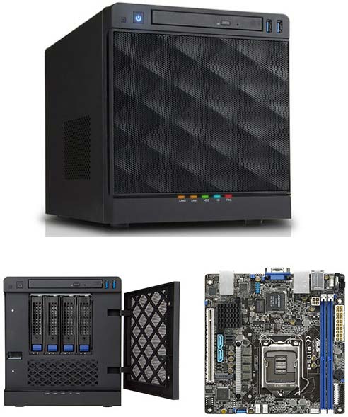 На корпусе TS3113-MH4 можно найти кнопки включения/выключения и сброса, а также светодиоды активности сети и накопителей, судя по фото, есть и оптический привод. Питание аппарата осуществляется от 315-ваттного блока питания с сертификатом 80 Plus Gold. Размеры творения Diginnos составляют 210x275x230мм, вес не указан.