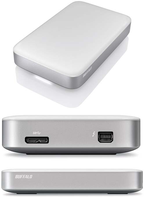 Подключение можно осуществить как по USB 3.0, так и по Thunderbolt - в скорости передачи данных разницы не будет, несмотря на теоретическое превосходство более нового интерфейса - тут всё ограничится скоростью винчестера от Buffalo.