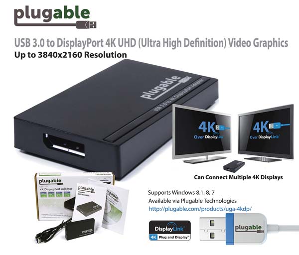 Устройство является обычным переходником с USB 3.0 на DisplayPort, основан аппарат на чипсете DL-5500 от DisplayLink, есть поддержка вывода изображения в разрешении 4K. С помощью агрегата можно подключить не поддерживающий разрешение 4K ноутбук или компьютер к UHD монитору и радоваться его сверхвысокому разрешению.