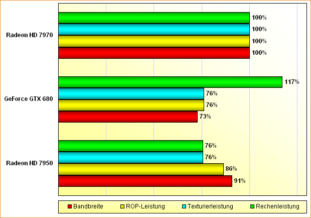 Итак, по имеющимся данным, касаемо изделия на базе GK104, иностранные коллеги высчитали, что новый ТОП (а ТОП оно или нет - пока не ясно) компании мистера Хунга имеет на 17% более высокую производительность в вычислительных операциях, нежели решения на базе Tahiti (AMD HD 7950 / HD 7970). Смотрим, как это умозаключение выглядит в графическом виде: