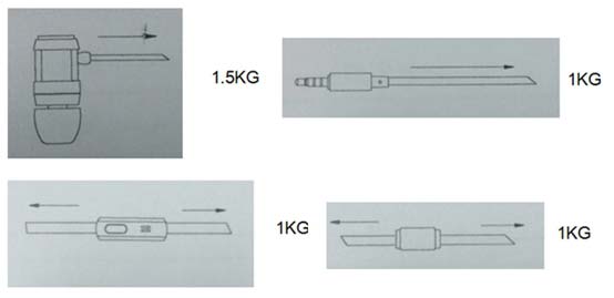 Также есть данные о тесте на липучесть, но картинка не предоставлена. Кабель наушников помещается между двух акрилонитрил-бутадиен-стирольных плит (вес каждой 300 граммов) на 24 часа при температуре 60 градусов по Цельсию. Зачем это нужно - не объясняется.