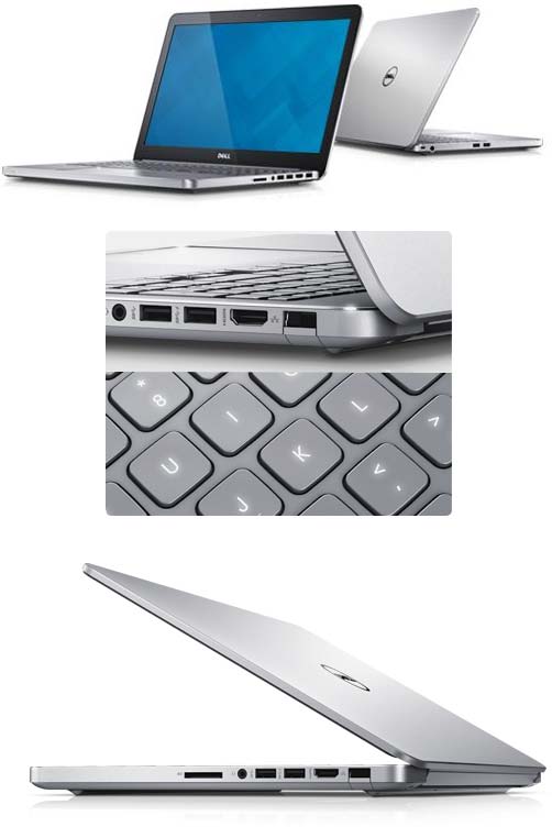 Inspiron 15 (7000) оснащён портами USB 3.0, один из которых имеет функцию PowerShare, плюс у ноутбука есть видеовыход HDMI 1.4a и SD картридер. Размеры новинки: 379.4x254.8x22.2мм, вес равен 2.6КГ.