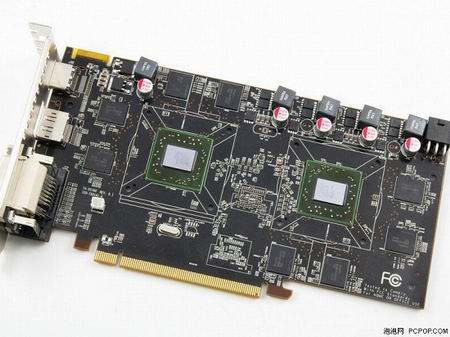 Китайский производитель предлагает нам видеокарту, оборудованную двумя чипами Juniper (частота работы которых 850МГц) и обладающую 1ГБ видеопамяти GDDR5 4800МГц. Самое занимательное в этой карте это то, что применён чип Lucid Logix Hydra, его можно заметить на обратной стороне видяхи. По заверениям иностранных коллег, данная графическая карта обладает производительностью на уровне Radeon 5870. Питание карты осуществляется по схеме 4+1. Видеовыходы: пара DVI, HDMI и DisplayPort. Система охлаждения внешне напоминает собой знаменитое творение Accelero - Twin Turbo PRO, надеюсь, что не только внешне.