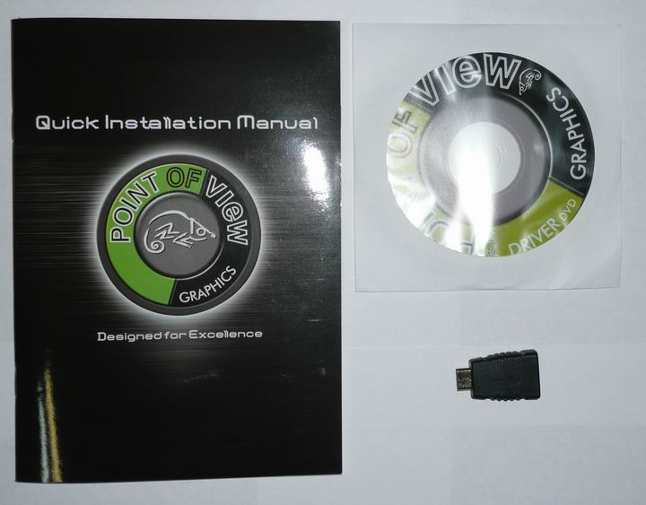Комплект поставки не богат - сама видеокарта, переходник с mini HDMI на обычный HDMI, диск с утилитами и драйверами, плюс инструкция по эксплуатации.