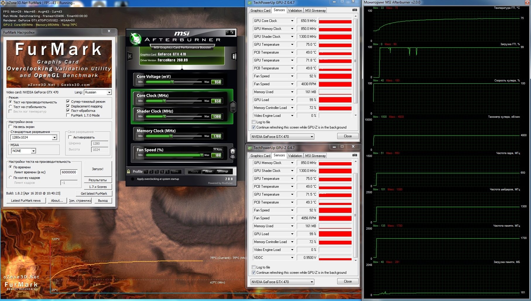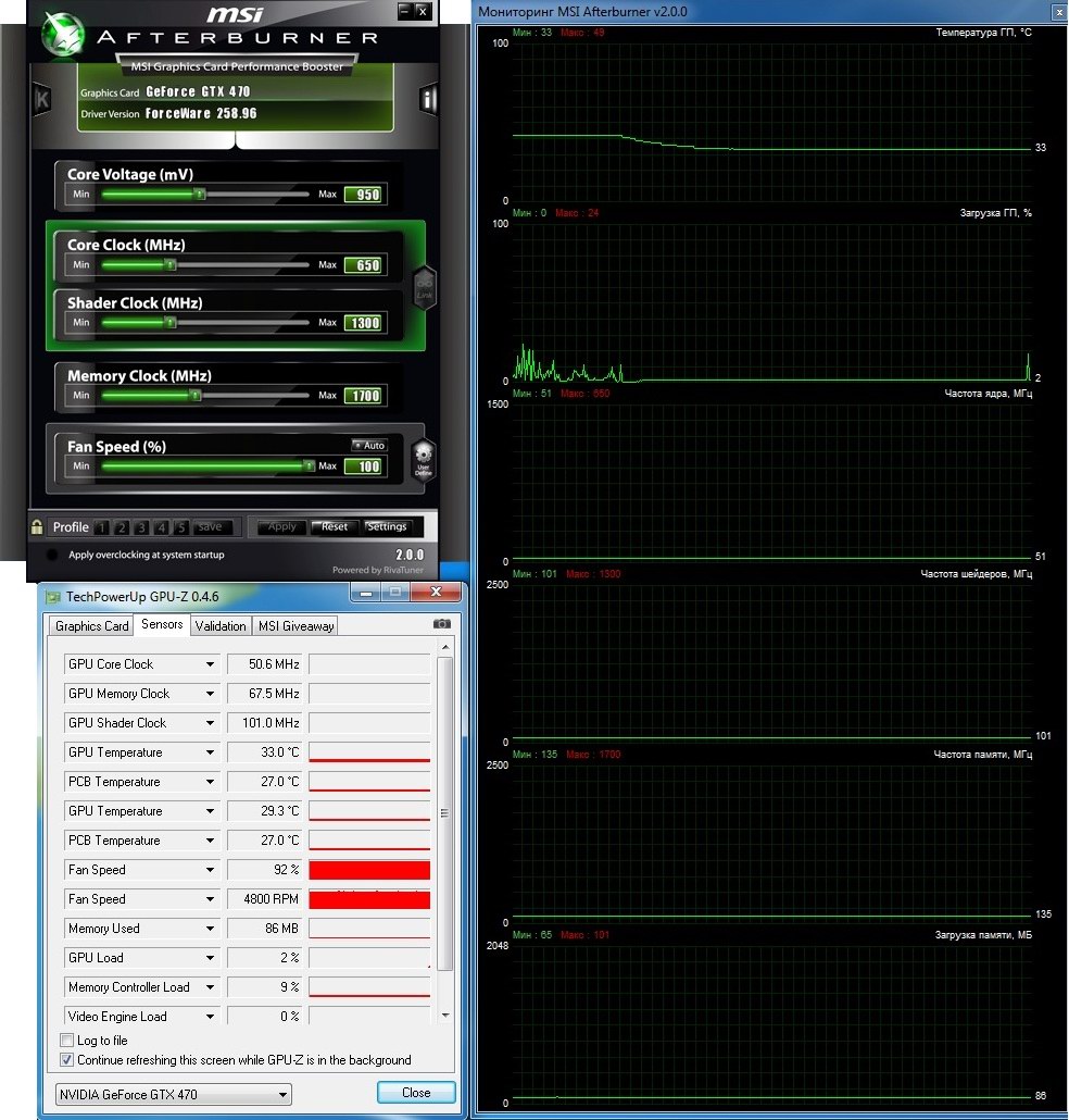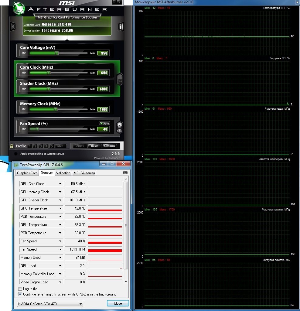 Насмотрелись? Это хорошо, но прежде чем перейти к температурным показателям новинки, давайте ознакомимся с её характеристиками, в этом нам помогут скриншоты из GPU-Z и MSI Afterburner: