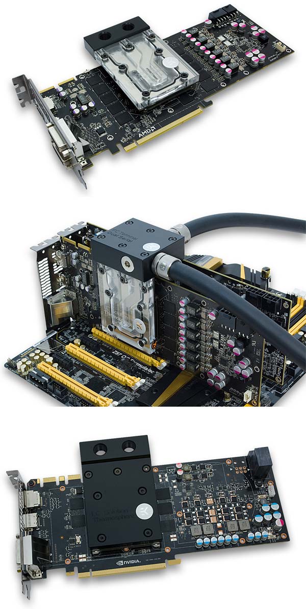 Как не сложно догадаться, пользователю придётся самостоятельно заморачиваться на предмет поиска системы охлаждения для чипов памяти видеокарты, области питания и так далее, в EKWB советуют запастись радиаторами и вентиляторами для этих целей. Новинка сделана из электролитической меди, нержавеющей стали и ацеталя (есть вариант и с крышкой из плексигласа, у этих моделей имеются отверстия для 3мм LED диодов). Ввёртные стойки из латуни уже установлены, благодаря этому инсталляция водоблока пройдёт быстро, а самое главное - безопасно.