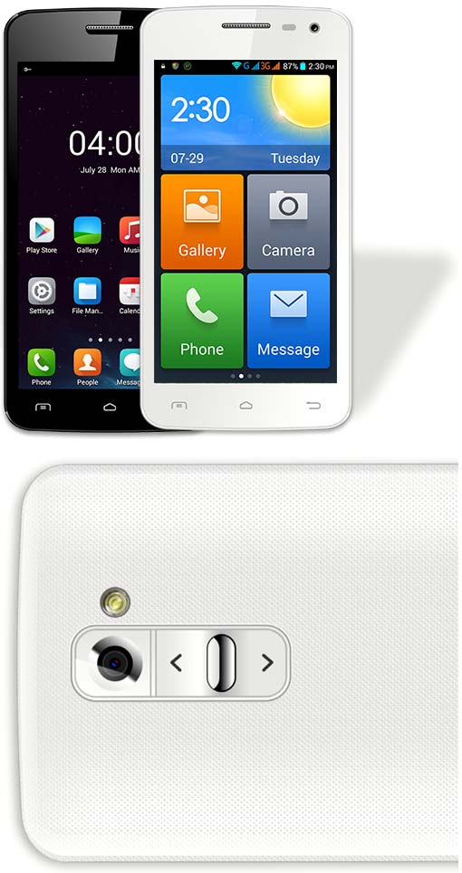 В основе аппарата лежит SoC MT6572 (2 ядра Cortex-A7, 1.2ГГц), объём оперативной памяти равен 512 мегабайтам, а флеш памяти имеется 4ГБ и её можно расширить карточками microSD/SDHC на 32ГБ. Графическое решение - Mali-400, питается новинка от батареи на 1850 мАч.