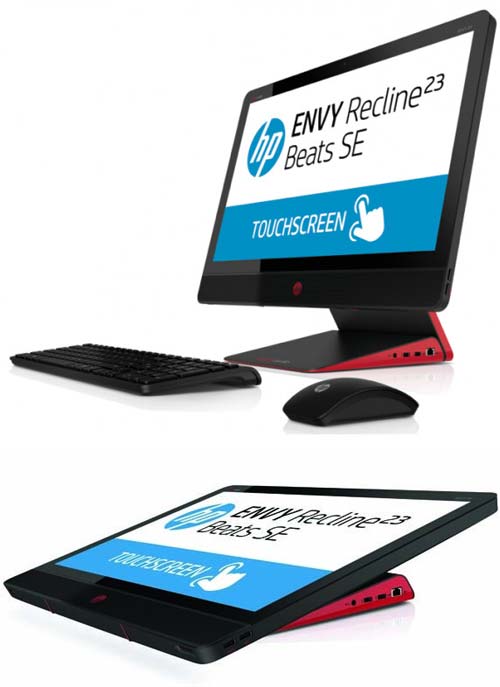 Первая новинка - ENVY Recline23 TouchSmart, про него известно лишь то, что внутри устройства используется процессор Intel Core i7, 8ГБ оперативной памяти и... всё. Данных о "начинке" нет, а экран изделия имеет диагональ 23 дюйма. Вторая новинка - ENVY Recline23 TouchSmart Beats Edition, в нём используется процессор Core i5, 8ГБ оперативной памяти, плюс имеются стерео-колонки от Beats Audio.
