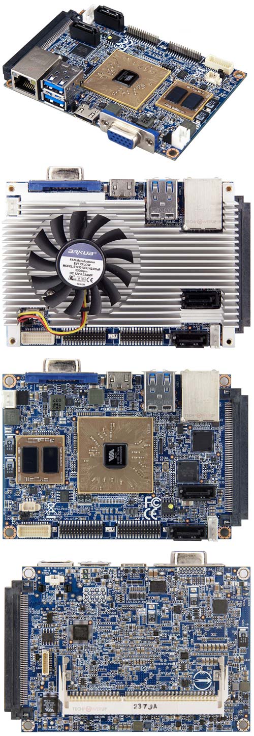 В изделии EPIA-P910 используется оперативная память DDR3-1333, максимальный её объём ограничен 8ГБ, количество SATA портов - два, есть поддержка HD аудио. Габариты изделия: 100х72мм, вес не указан. У материнской платы имеется один гигабитный Ethernet порт, PS/2 порт, четыре пары DIO и два порта UART. Охлаждение платы лежит на плечах алюминиевого радиатора и вентилятора, скорость вращения которого аж 6500 об/мин (максимальная, а не постоянная).