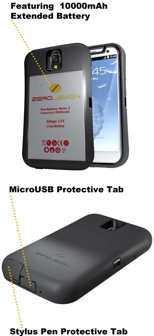 Указанная компания предлагает заменить обычную батарею Samsung Galaxy Note 3 (любой версии планшетофона) на монструозную 10000 мАч батарею. Изделие довольно габаритное и производителем было принято решение сделать из него вдобавок ещё и защитный кейс для дорогого аппарата от Samsung. Изделие защищает планшетофон со всех сторон, с ним в комплекте даже идёт прочный "скрин протектор" (защита для экрана). Производитель гарантирует удовлетворённость клиента своим агрегатом, поэтому предлагает манибэк на устройство в течении 30 дней и гарантию в 180 дней.