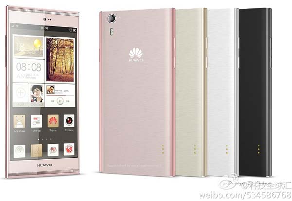 Нам сообщают, да и по фото ниже это видно, что Huawei Ascend P7 (Sophia) будет доступен в четырёх цветах: чёрном, серебристом, розовом и золотом. Экран изделия имеет диагональ 5", его разрешение составляет 1920x1080, объём оперативной памяти равен 2ГБ, места для файлов пользователя и ОС Android 4.3 выделено 16ГБ, а питается данная новинка от батареи на 3000 мАч, что весьма круто. Работает смартфон в сетях 4G LTE и 3G, поверх ОС установлен пользовательский интерфейс Emotion. Тыловая камера оснащена 13МП сенсором и вспышкой, а фронтальная - 8МП.
