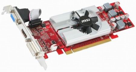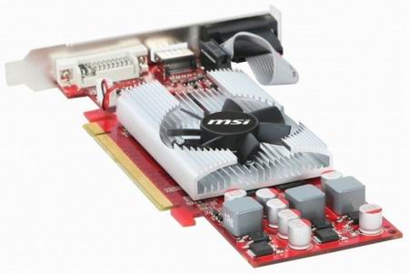 Раз мы видим подобную карту, первая мысль, что должна мелькнуть в голове - "она предназначена для HTPC". Так и есть, на большее вряд ли стоит рассчитывать, уж в 3Д игры на ней можно поиграть только в самые старые, зато с аппаратным декодированием HD-видео она справится прекрасно. MSi применила в данной видеокарте печатную плату собственной разработки (да ещё и красную). Охлаждением видяхи занимается крошечный радиатор с маленьким вентилятором, жаль что параметры его шумности не указаны. Графический чип, установленный в данной видеокарте - GT216, что и так понятно.