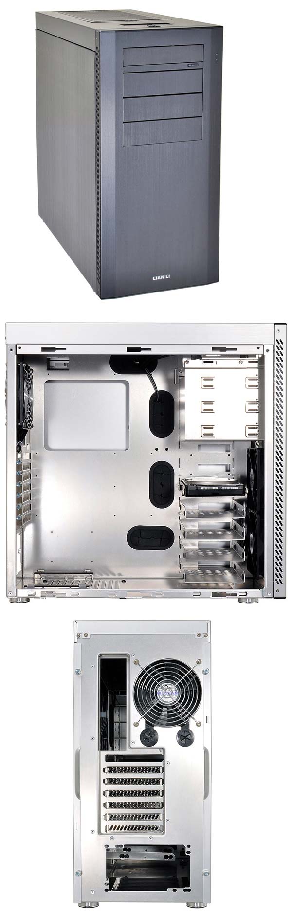Количество слотов расширения равно семи, продукт Lian Li совместим с системными платами форм-факторов ATX и microATX, имеет четыре порта USB 3.0 и два HD аудио коннектора на панели ввода/вывода. На фронтальной стенке имеются два 120мм вентилятора, один закреплён на задней, плюс есть места для парочки 120/140мм на верхней стенке. Лимит на длину видеокарты - 280/420мм, на длину блока питания - 280мм, на высоту кулера - 170мм, 30мм выделено на укладку кабелей.