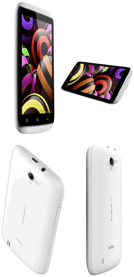Новинка называется Cloud Y4, у неё 4" сенсорный экран ёмкостного типа с разрешением 800x480. Объём оперативной памяти аппарата равен 512МБ, места для ОС Android 4.2.2 выделено 4ГБ. У изделия две камеры - 5МП задняя и 1.3МП фронтальная, питается умный телефон производства Intex от батареи на 1400 мАч.