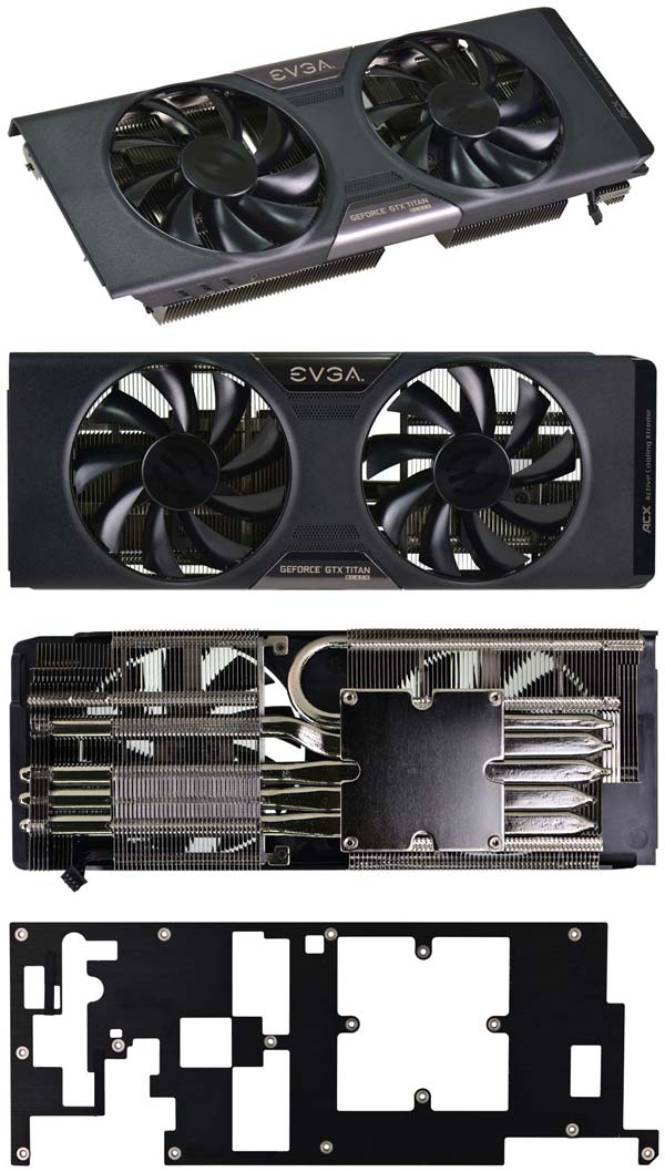 Как известно, Nvidia запретила оснащать видеокарты семейства GeForce GTX TITAN Black нереференсными кулерами, исключением стали карточки серии обладающие водоблоками. Чтобы данный запрет обойти, компания EVGA предложила свой фирменный кулер ACX (Active Cooling Xtreme) для розничного приобретения.